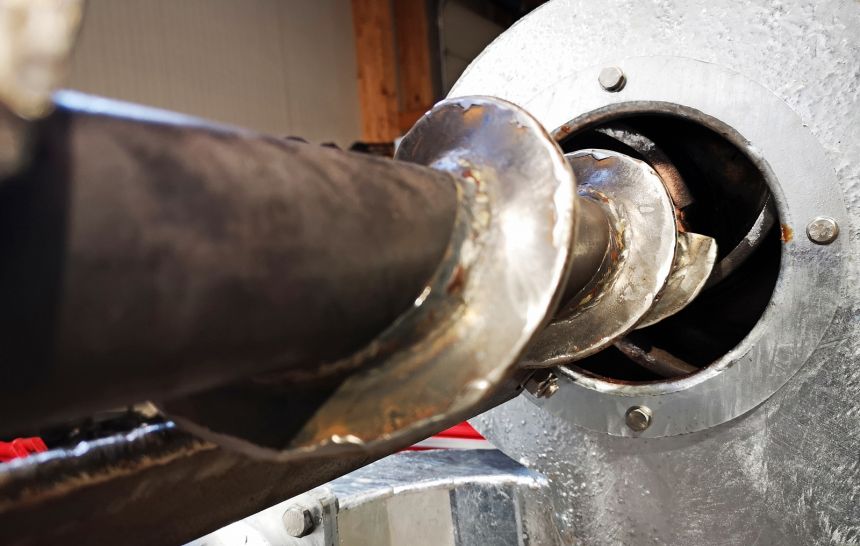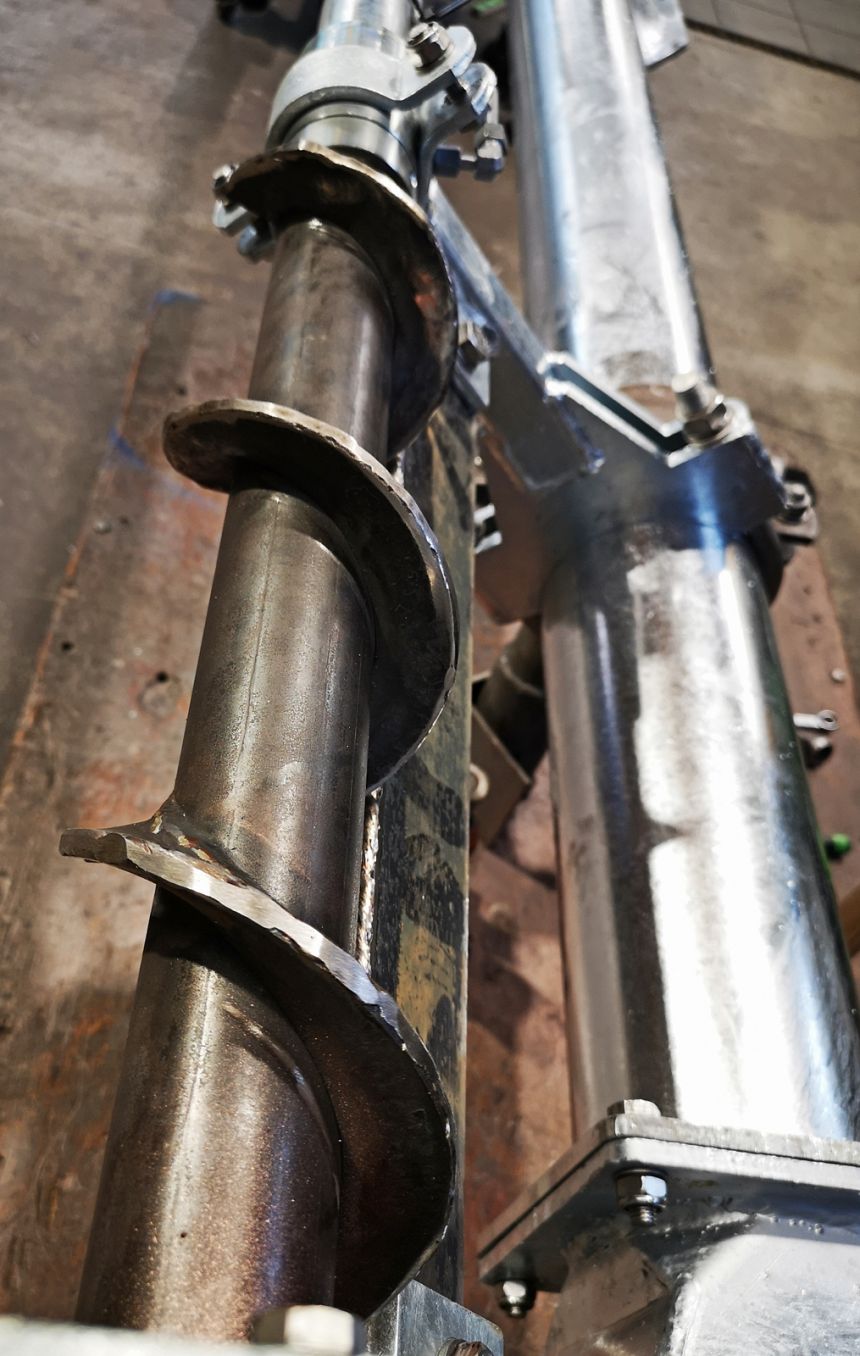 hartmetallbeschichtete Einzugsschnecke und Gegenschneide zur Zerkleinerung langfaseriger Bestandteile